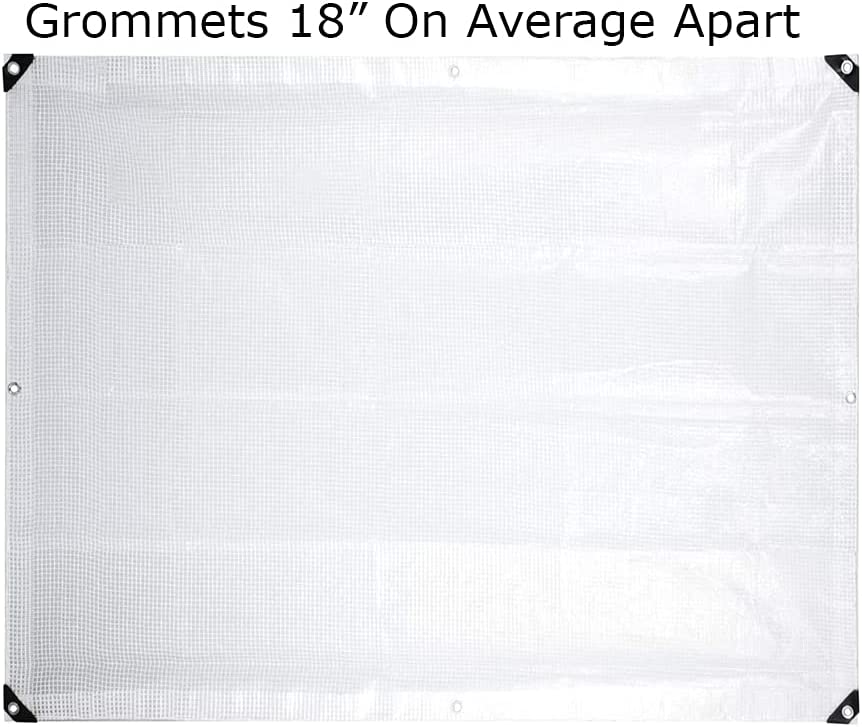 Extra heavy duty clear tarps include ,18" Grommet Spacing 1200 Denier Super Tear Resistant 3 Ply Poly material waterproof and UV treated sides. Each tarp is also reinforced with a heavy-duty, 7-ounce 14-MIL thick poly material. It’s built to resist tearing, fraying and stretching for years of high-quality use.